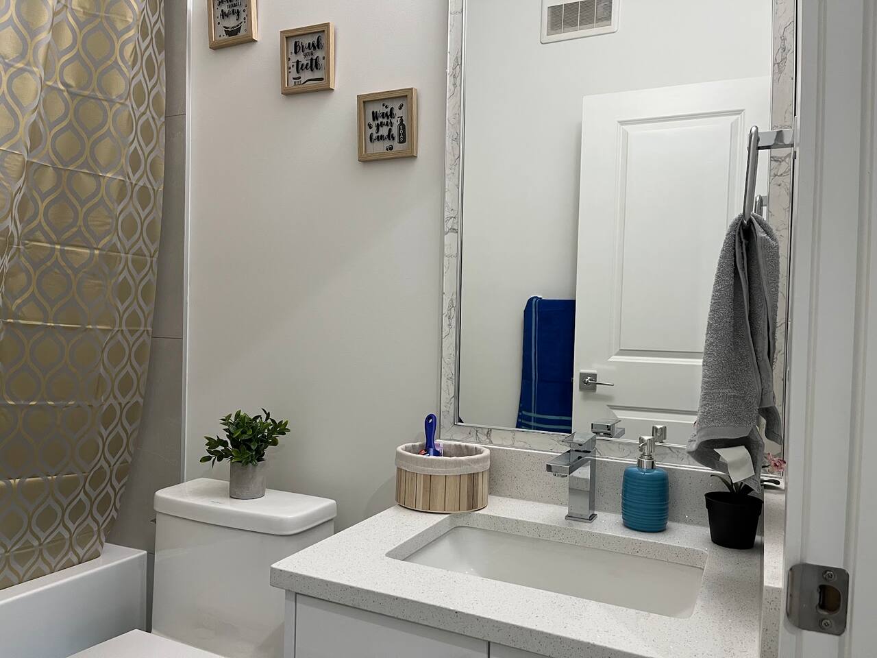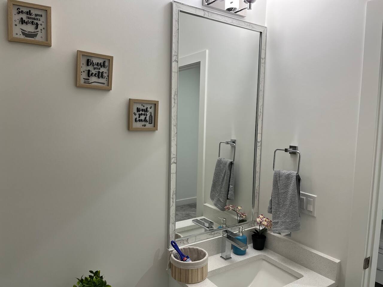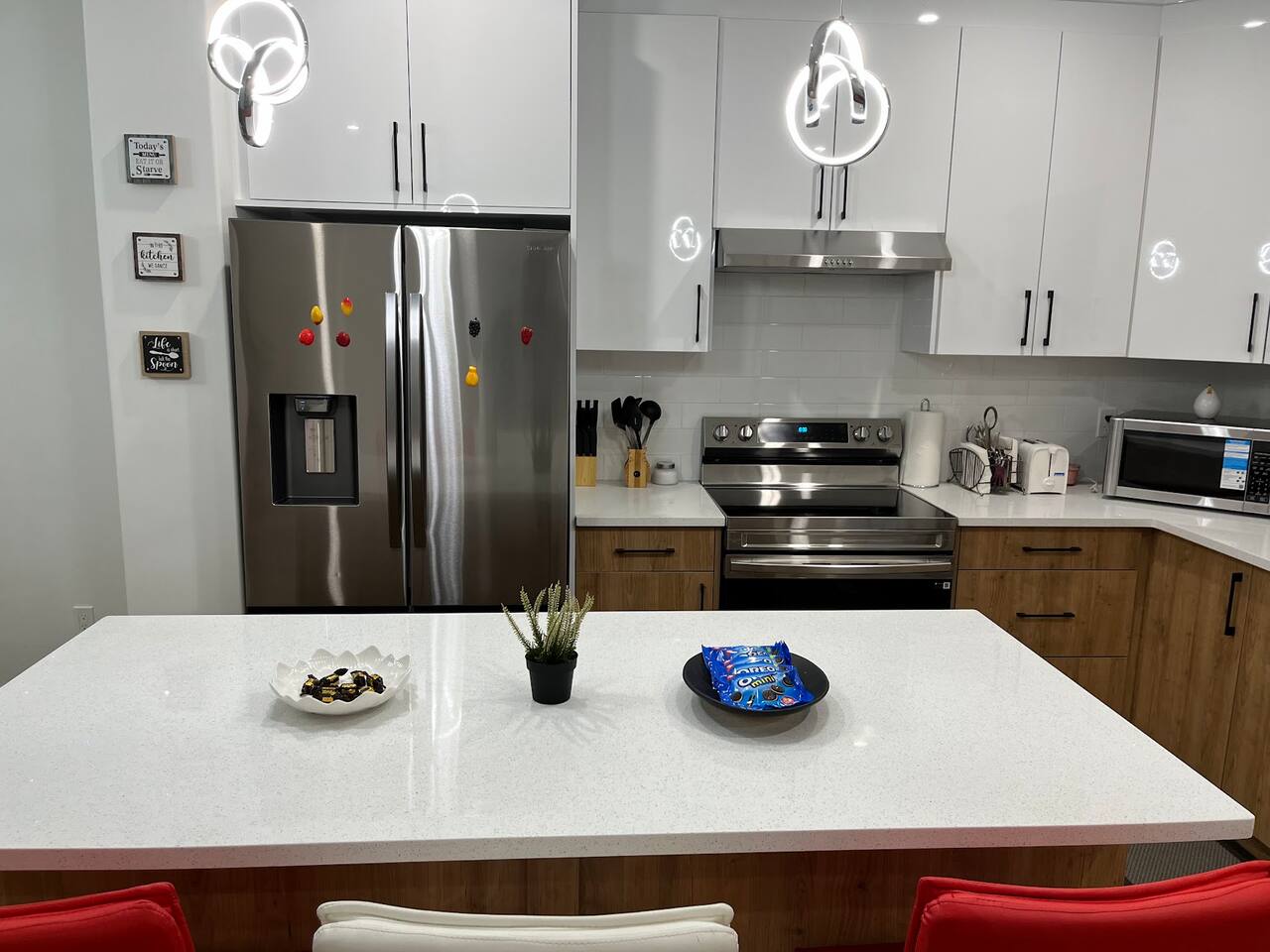 🏠 Exterior & Entry Welcome to Your Beaumont Retreat – Modern 2024-built home with private entrance and double garage. Quiet, Family-Friendly Neighborhood – Located in the vibrant Ruisseau community, close to parks and trails. 🛋️ Living Room Bright & Spacious Living Area – Open-concept design with natural light, leather seating, and a cozy electric fireplace. Entertainment Ready – 65” Smart TV, board games, and books for relaxing nights in. 🍽️ Kitchen & Dining Chef’s Kitchen – Fully equipped with quartz countertops, stainless steel appliances, and all the essentials. Gather Around the Table – Dining for 6 plus 3 bar stools—perfect for family meals or game nights. 🛏️ Bedrooms Master Suite Comfort – King bed, walk-in closet, and a luxurious ensuite with quartz finishes. Cozy Queen Bedroom – Ideal for couples or solo travelers seeking restful sleep. Family-Friendly Third Bedroom – Double + twin bed combo, perfect for kids or extra guests. 🧺 Bathrooms & Laundry Sparkling Clean Bathrooms – Modern fixtures, fresh towels, and thoughtful touches. Convenient Laundry – In-unit washer and dryer on the second floor for extended stays. 💼 Bonus Room & Workspace Work or Unwind – Bonus room with a dedicated desk and comfortable seating for remote work or reading. 🚗 Garage & Parking Double Detached Garage – Secure parking and extra storage space for your convenience. 🌳 Community & Location Explore Ruisseau – Steps from trails, playgrounds, and a top-tier recreation center. Close to Everything – 15 min to the airport, 30 min to downtown Edmonton, and near major shopping hubs.