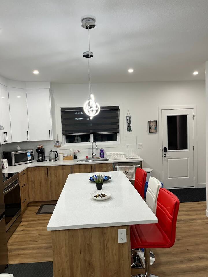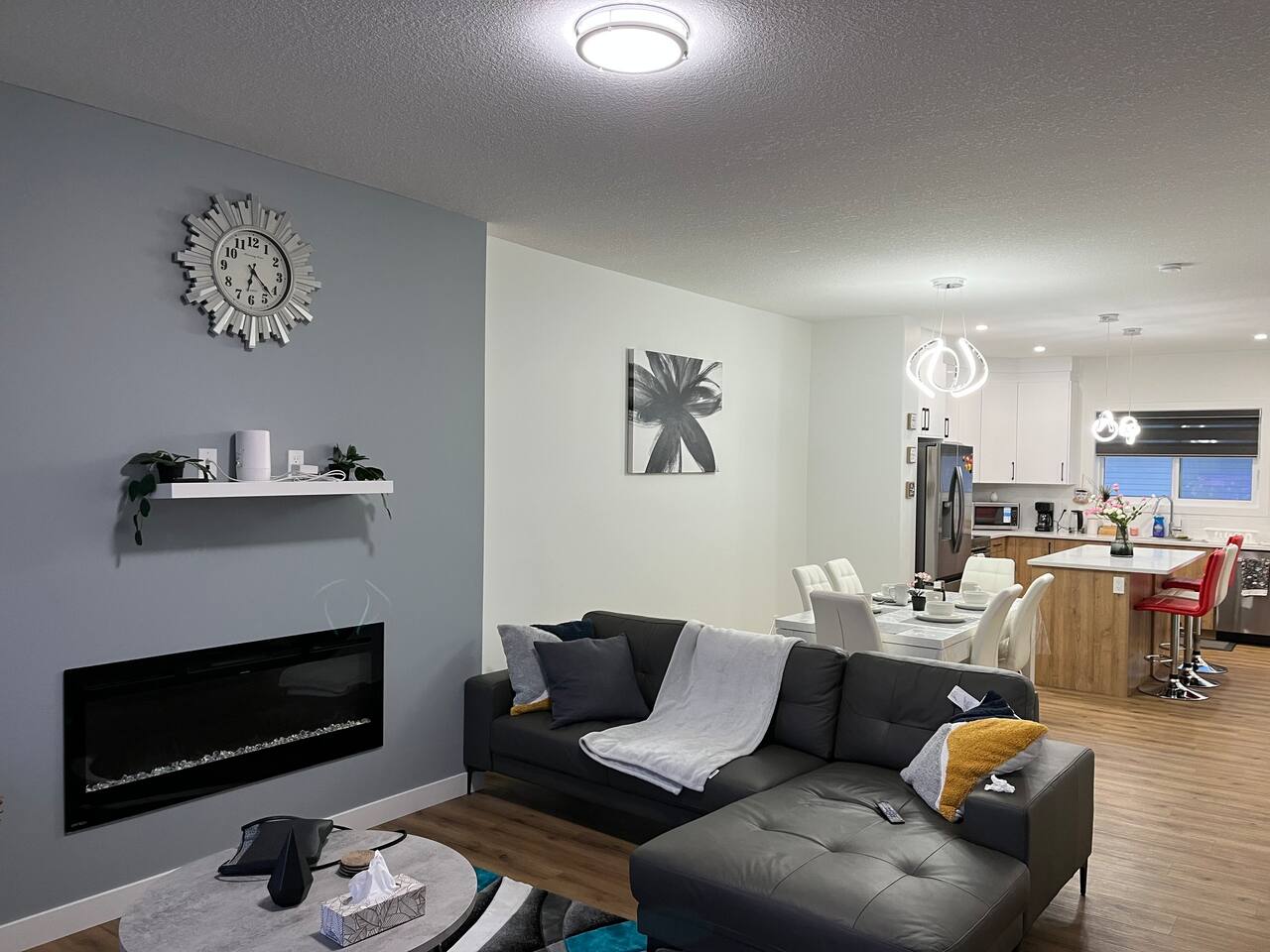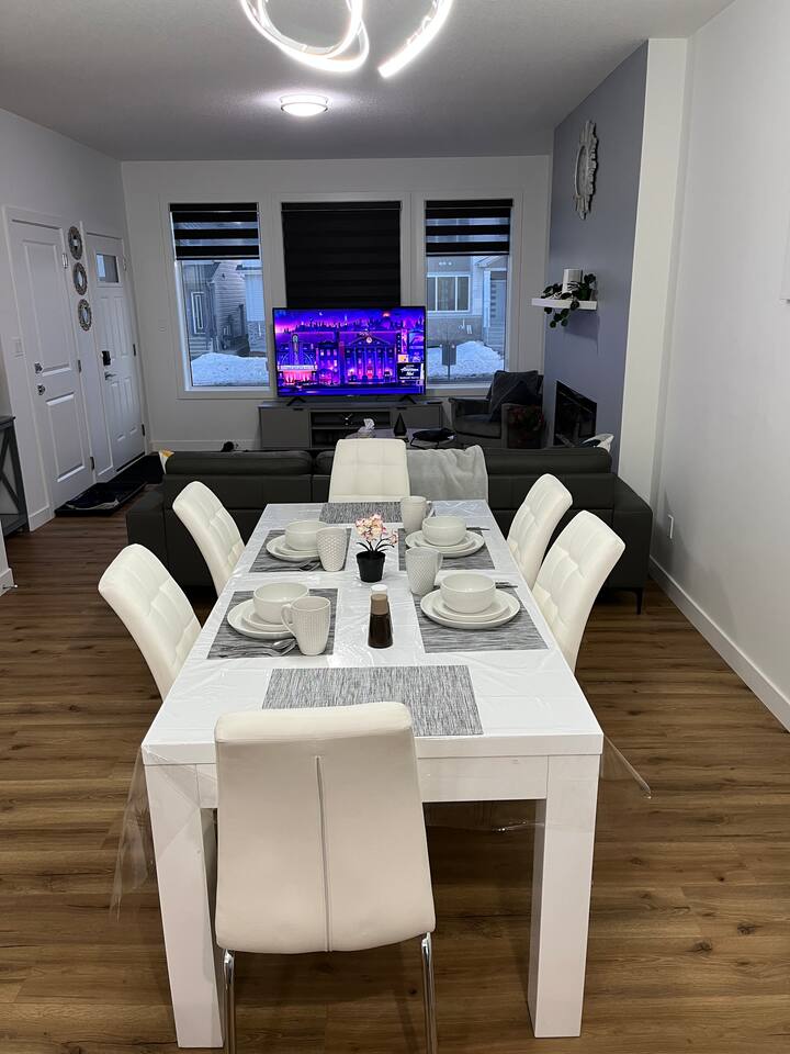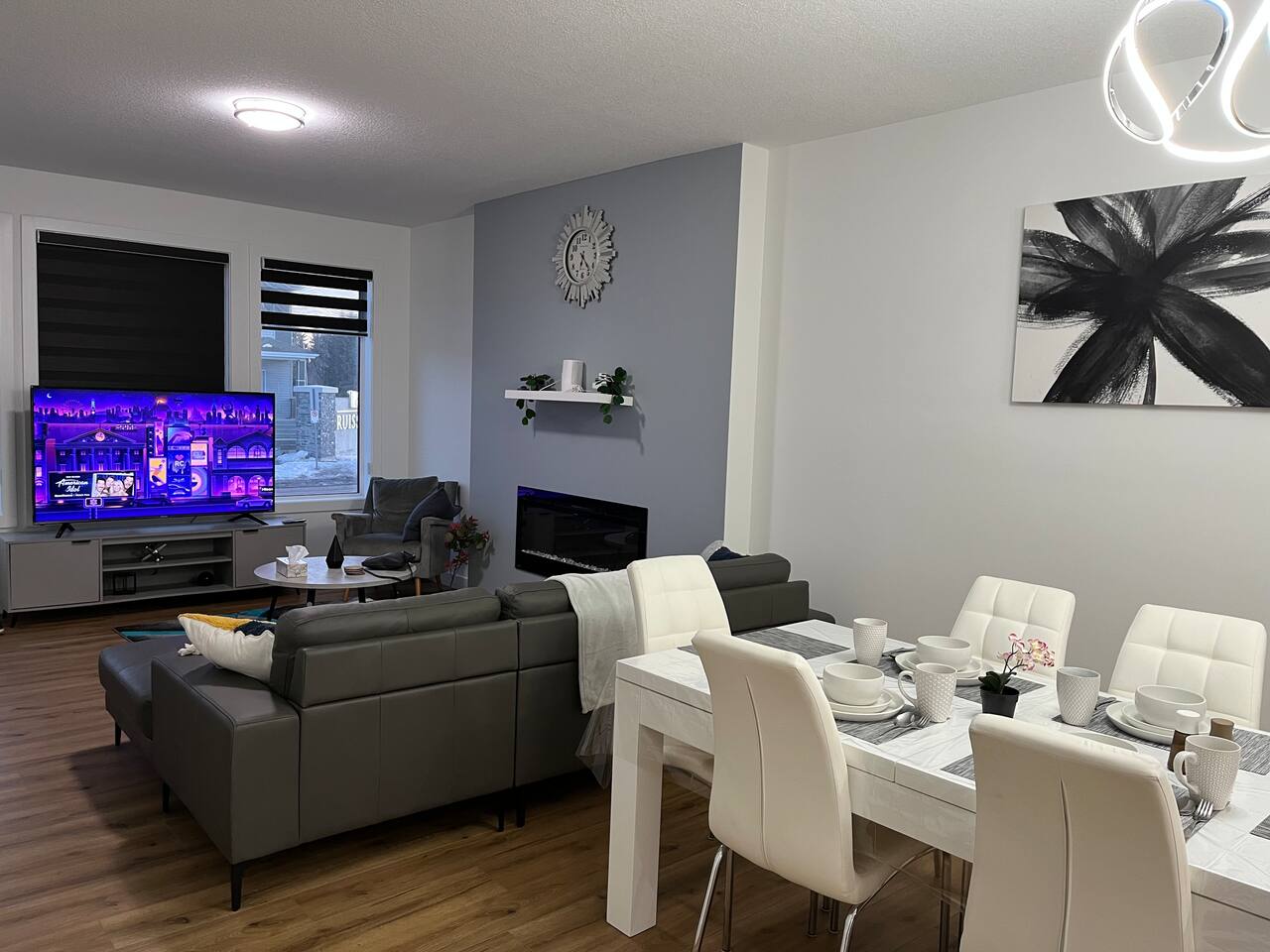 ✨ What You’ll Love: *Spacious Layout: Open-concept living and dining area with large windows, luxury vinyl plank flooring, and a cozy electric fireplace. * Gourmet Kitchen: Fully equipped with quartz countertops, stainless steel appliances, a large island, and all the cooking essentials. * Comfortable Sleeping for 10: * Master suite with a king bed, walk-in closet, and private ensuite. * Second bedroom with a queen bed. * Third bedroom with a double + twin bed. * Leather sofa in the living room can accommodate extra guests. * Bonus Room: Ideal for remote work or relaxation, complete with a dedicated workspace. * Convenient Laundry: In-unit washer and dryer on the second floor. * Double Detached Garage: Secure parking and extra storage space. 🌟 Location Highlights: - 15 min to YEG Airport - 9 min to Nisku Business Park - 14 min to South Edmonton Common - 30 min to Downtown Edmonton & Rogers Place where you can support Oiler team and attend Hokey tournament. - Enjoy nearby parks, trails, playgrounds, and a state-of-the-art recreation center with an ice rink, gym, and climbing wall—perfect for active families.